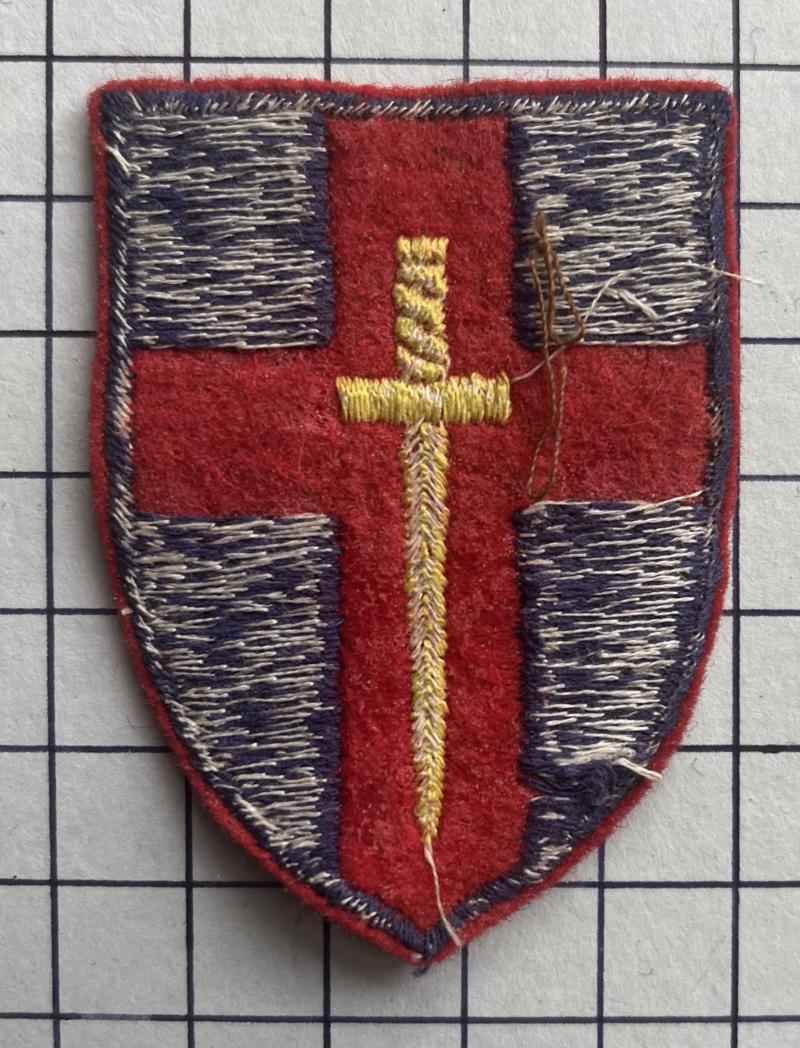 Rhine Army Tps Formation Designation Sign badge embroidered yellow sword on a red cross on a blue shield. VGC. Adopted 1947.