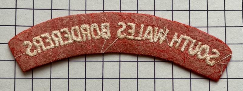 cWW2 South Wales Borderer (SWB) Regiment Cloth 'Paste Back' Shoulder Title Badge