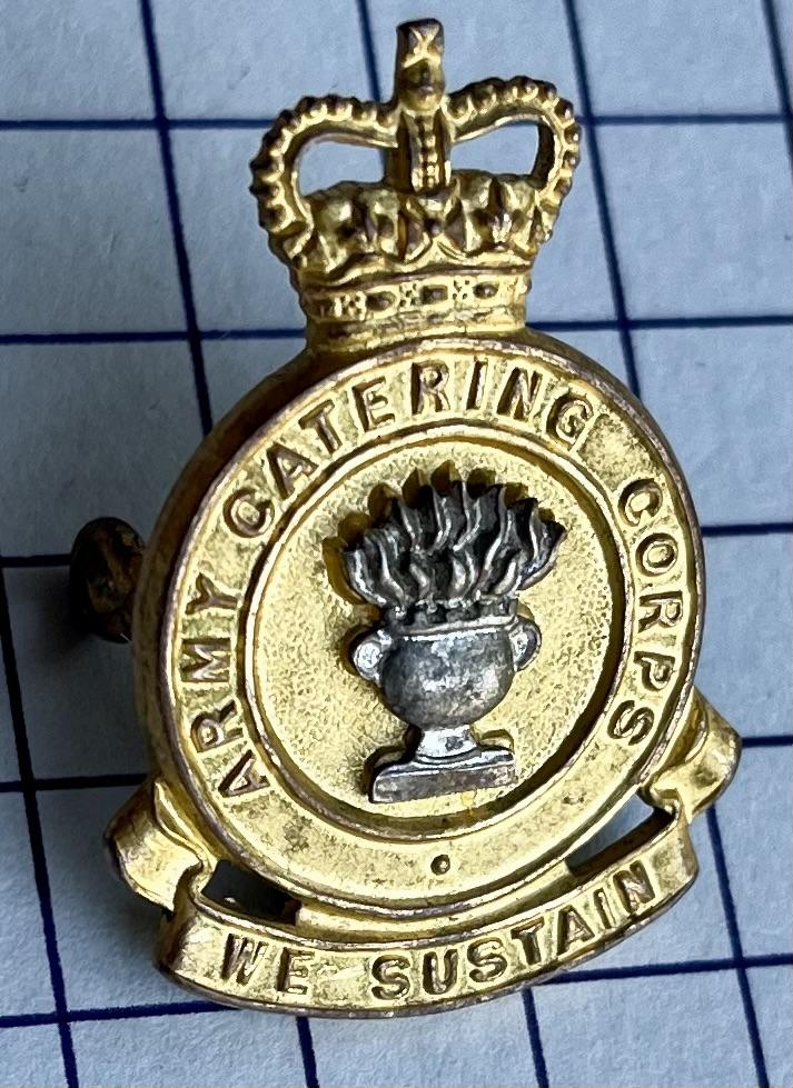 c1953-93, A.C.C. Officer Pattern cap badge on lugs silver plate and gilt. Near VGC.