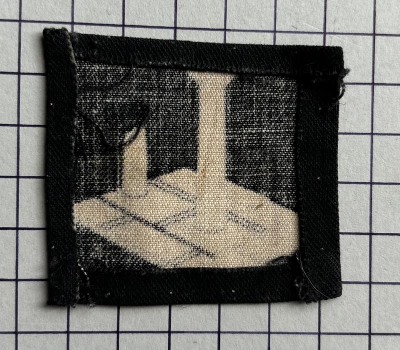 Overseas District, Cyrenaica District Printed Formation Sign. Two pillars, one broken, on paving, in white with black detail, all on a black ground. Used, near GC.