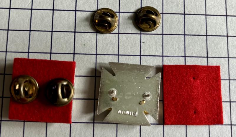 Lovely R.G.B.W. short lived 2nd and last Patt Offr pair of collars, silver and gilt washed with red felt backing cloth. On pins attachment maker marked FIRMIN. VGC.
