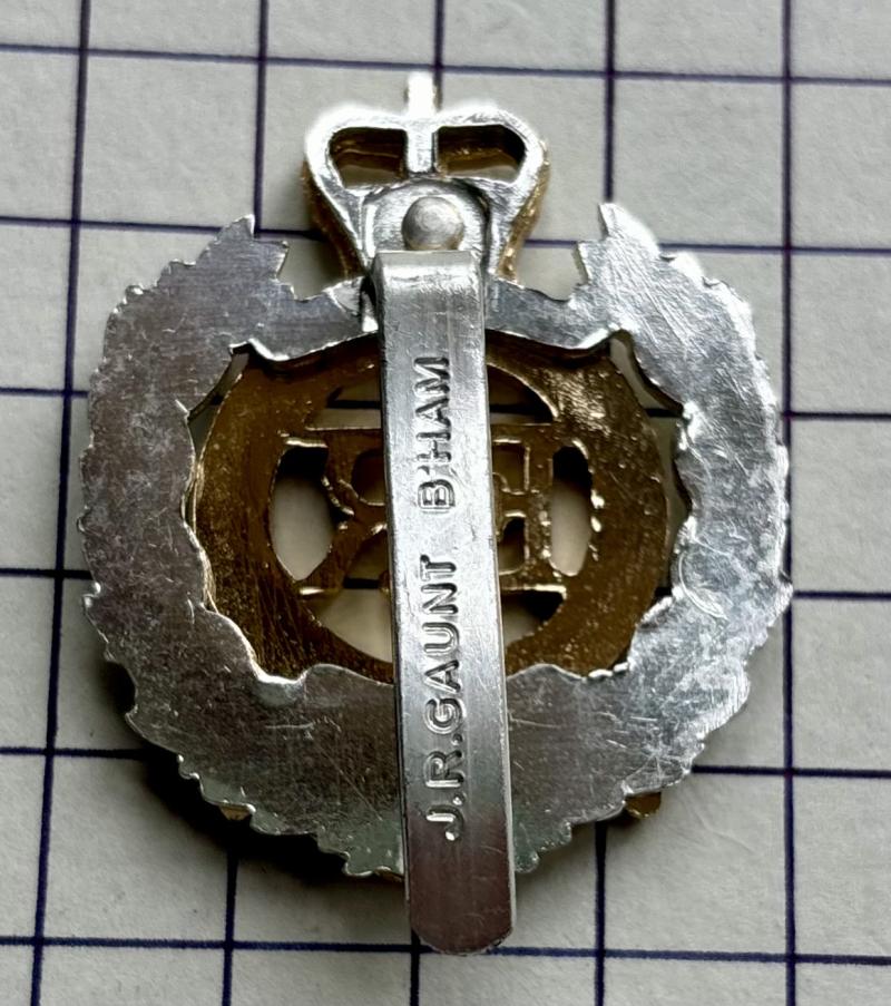 R.E. ano cap badge maker marked. J.R. GAUNT B'HAM. VGC.