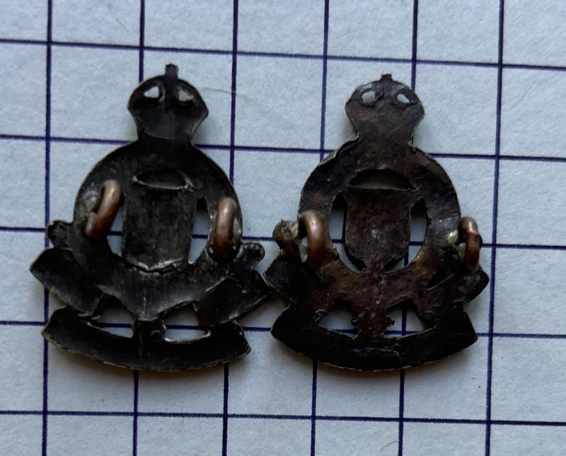 cWWII 2 x single (guns face the same way) R.A.O.C. Bronzed O.S.D. collars on lugs. One, VGC. One, GC.