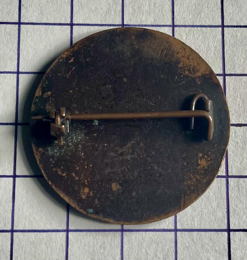 Bronzed pin backed badge. Issued to Indian Troops for serving overseas from 1939 - 1945. The badge was given to the Indian Army, Air Force and Navy personnel who had served outside of India. 12f