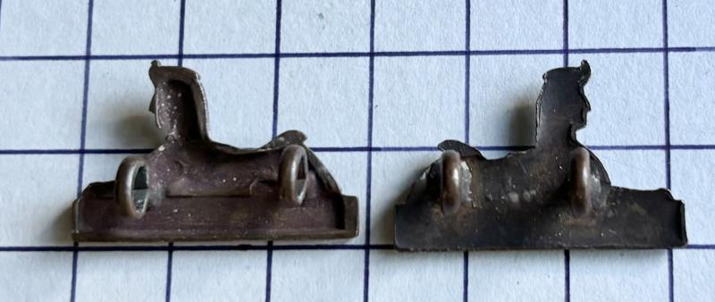 Near matching pair (slightly different backs) and tone to front. Gordon Highlanders Regt O.S.D. Collars. Near, VGC. Ref: Churchill 1716.