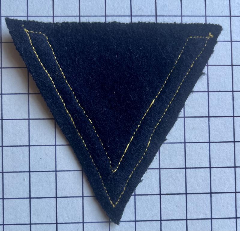 cWWII Kriegsmarine rank badge. Dark navy blue backing with inverted ‘V’ of gold tress. VGC.