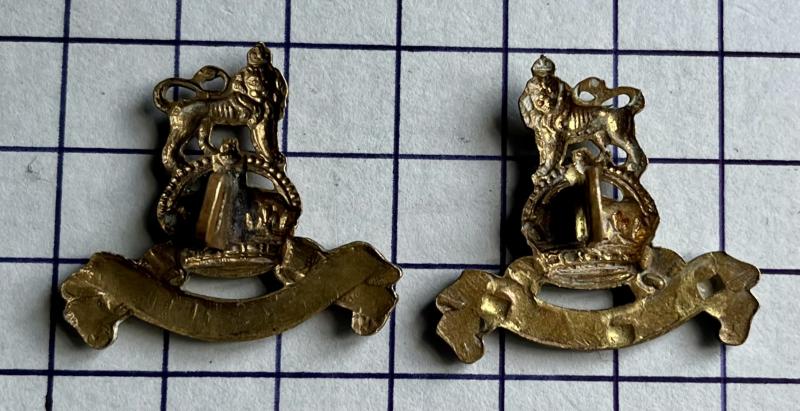 R.A.P.C. pair came together and match. However, there is a difference on reverse of scroll (see pic). Single lug attachment. VGC.