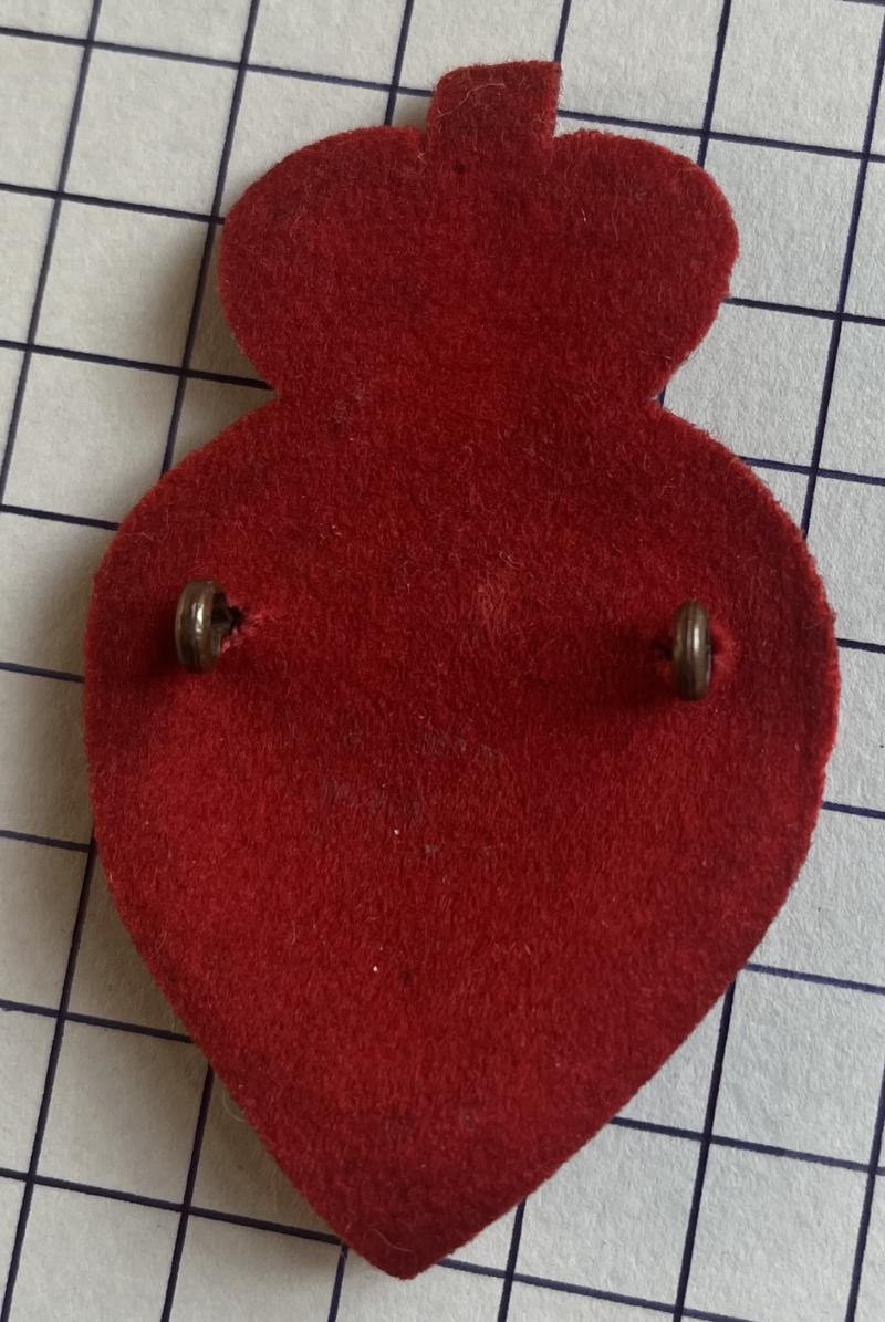 White metal die-struck Glengarry cap badge. Nice dark toned loops to reverse. Period red felt.