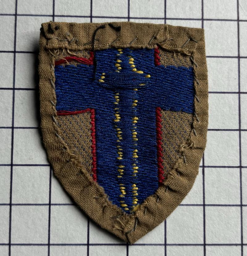 Rhine Army Troops, yellow sword, red cross on blue, woven military formation arm badge. VGC.
