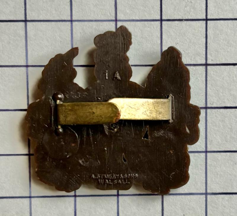 G.S.C. wartime economy King's Crown, plastic bakelite cap badge on blades. Maker marked 1-A. A. STANLEY & SONS WALSALL. VGC.