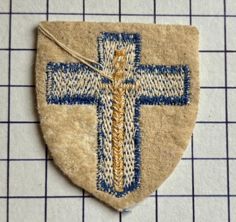cWWII 2nd Army badge, on a white shield a blue cross with a Crusader's sword superimposed. VGC. Ref: BoBD 3058