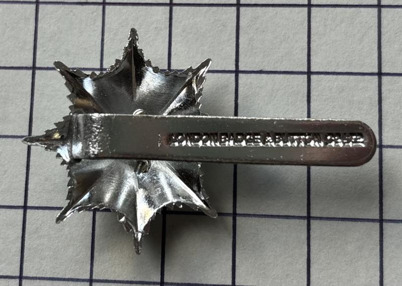 Royal Anglian Regt staybrite cap badge on slider maker marked LONDON BADGE & BUTTON Co ltd. VGC.