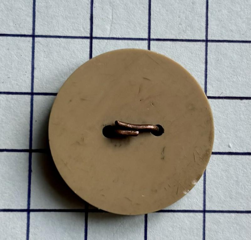 cWWII R.T.R. enamel brass small cap badge type device on a plastic / bakelite disc. Gouge to disc below tank and enamel missing from scroll. Also, looks like a pin attachment has never been fitted?