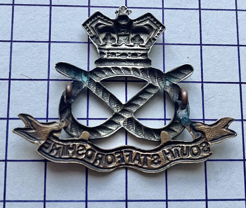 S.Staffs Pre-1902 ORs cap badge on loops. GC.