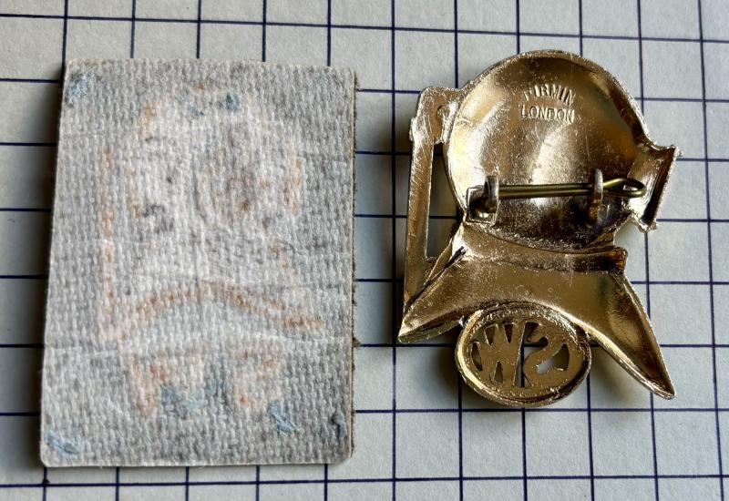 Scarce, staybrite ano R.E. 'SW' Diver Trade qual also worn by those Maritime members of the Royal Corps of Transport (RCT) who passed the course; worn on tropical dress. Maker FIRMIN. With a cloth badge patch for the No2 Dress uniform.
