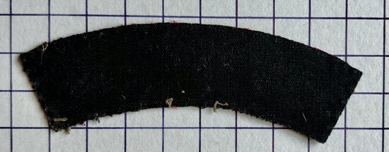 WWII Printed R.A.O.C. blue on scarlet cloth shoulder title badge. Removed from uniform. GC.