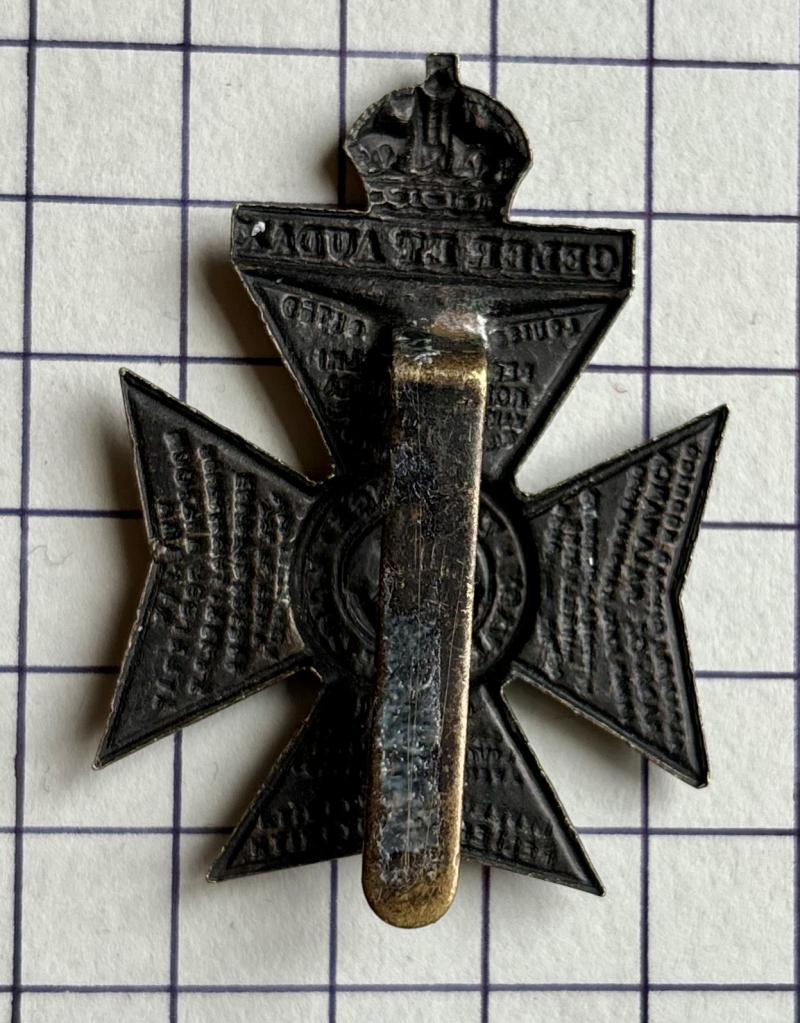 Blackened brass K.R.R.C. ORs cap badge - Larger Pattern - Circa 5.5cms tall, slider to reverse. VGC. Ref: KK Vol 1 No 675.