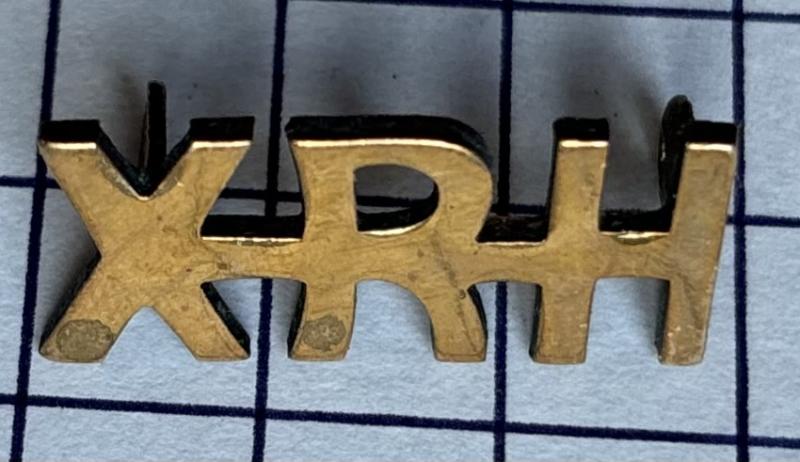 Theatre made XRH shoulder title. I think what looks like a polished front (without definition) is not polished but, made like this? Anyway, an interesting variation of XRH with integral lugs. GC.