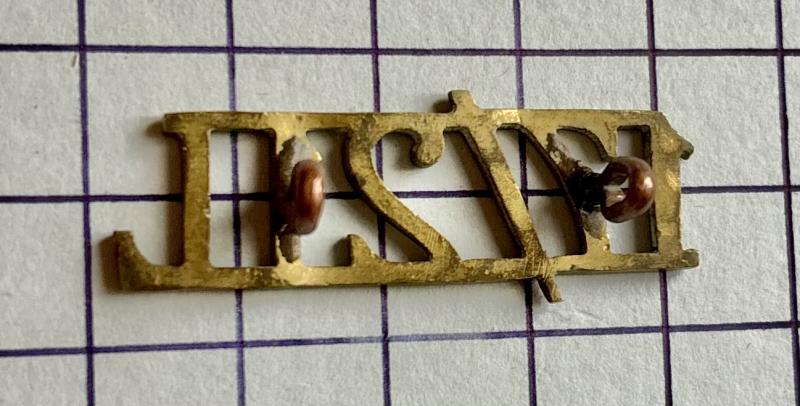 Small, 17 / 21L Regiment Offr's Patt shoulder title on lugs. GC. Height 12mm (not including dash). Width 40mm. Ref: Westlake172.