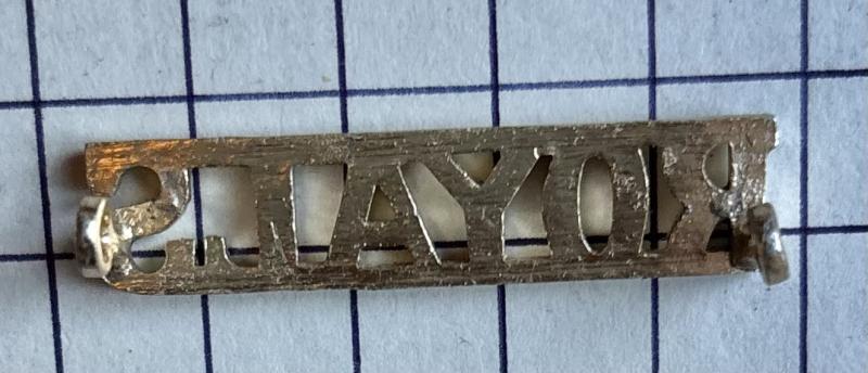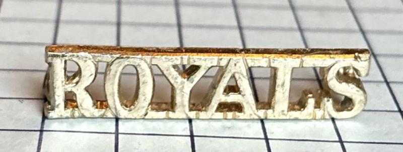 Rare, 'Royals' RDG ano staybrite shoulder title. Light scratches, worn.
