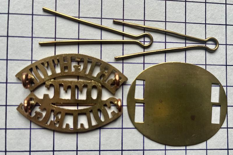 Brighton College, Sussex O.T.C. brass shoulder title with 4 x lugs and backing plate. 12f