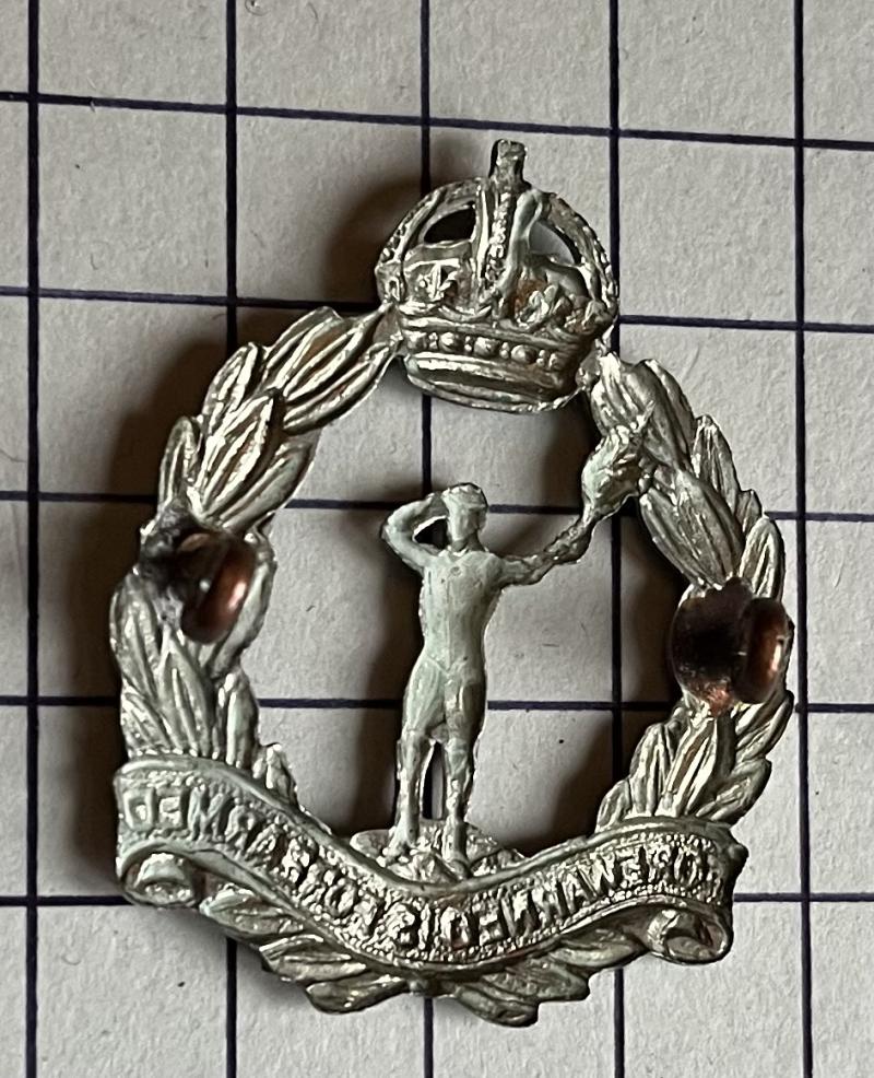 cWW2 R.O.C. white metal cap badge. Pre 1952. Lugs. VGC.