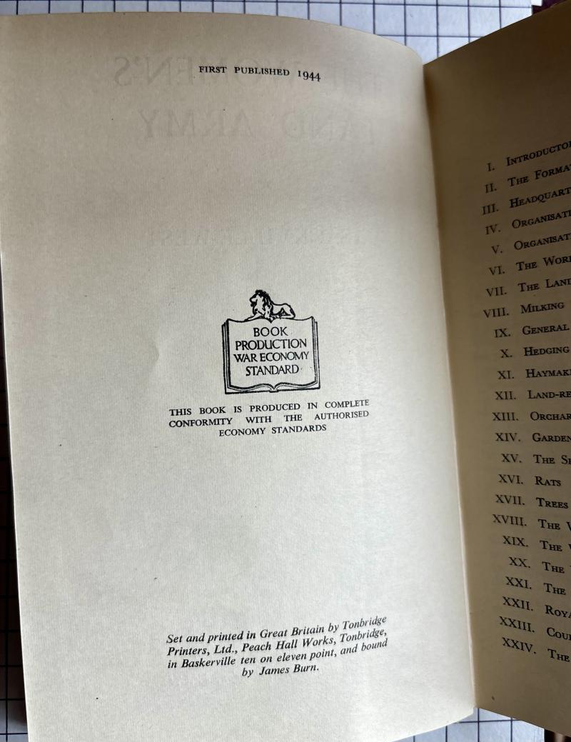 First Edition. A first printing of the first edition - with frontispiece and 62 pages of photographic plates. 'Published under the auspices of The Ministry of Agriculture and Fisheries.' 'Dedicated by Gracious Permission to the Patron of the Womens Land Army Her Majesty the Queen.' 'Book Production War Economy Standard.