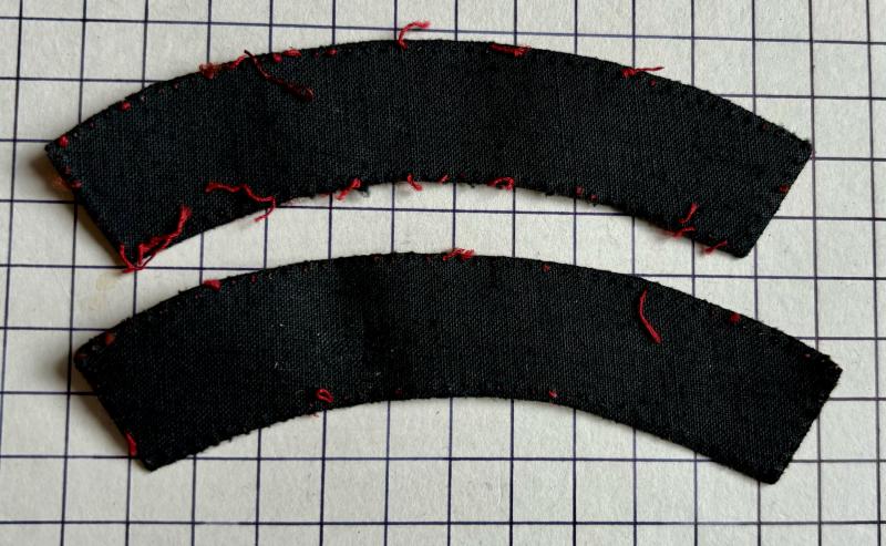 WWII, a good matching set of R.F. printed titles. Removed from Battle Dress uniform. GC.