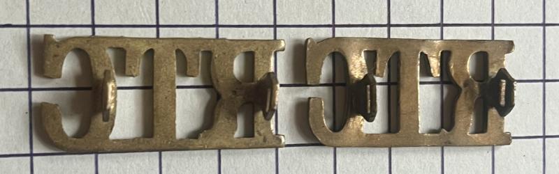 c1923-39 Royal Tank Corps (RTC) Pair of Brass Shoulder Title Badges