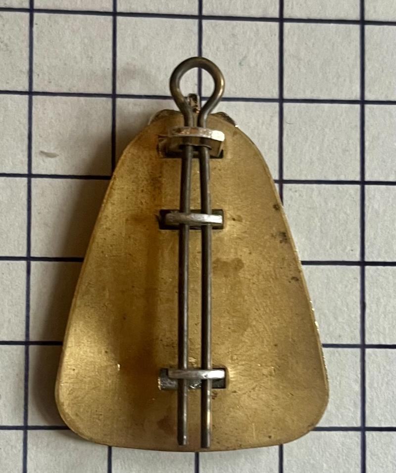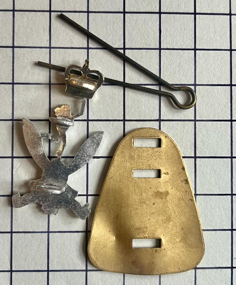 Rare, Gurkha Sigs Gold and Silver ano, staybrite 2-piece cap badge with brass backing plate. VGC.