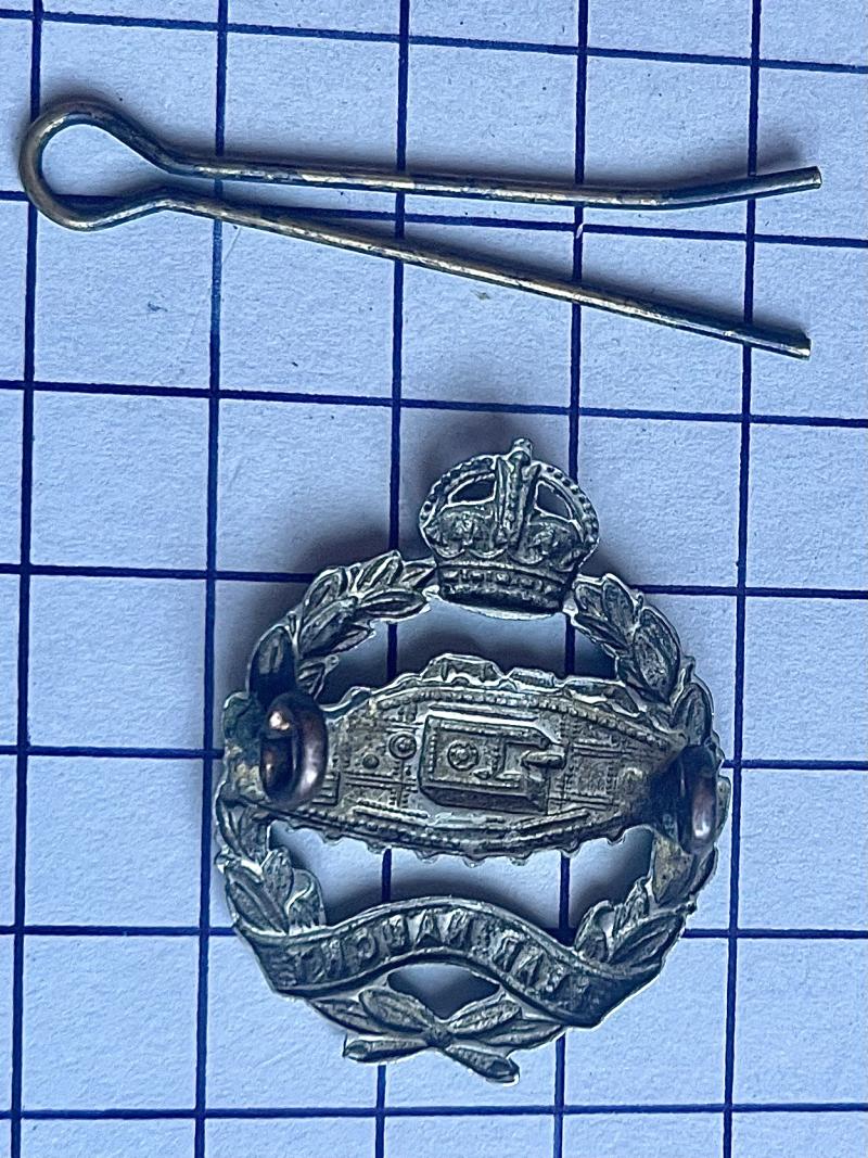 cWW2 Royal Tank Regiment (RTR) White Metal Cap Badge