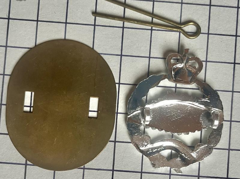 R.T.R. ano staybrite cap badge with brass backing plate. Maker marked 'GAUNT LONDON'. Loops. VGC.