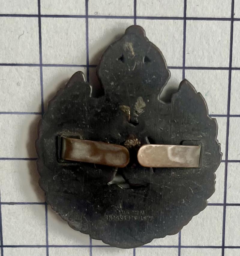 cWWII, wartime economy R.E. darker brown (than normally seen) variant cap badge.Maker A. STANLEY & SONS WALSALL. VGC.