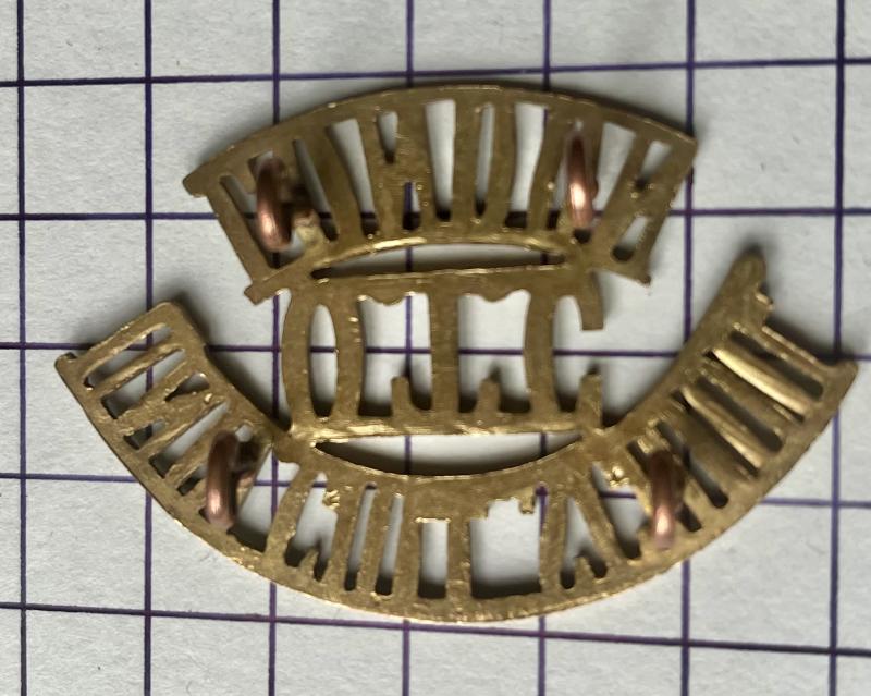 O.T.C brass shoulder title in very good condition, with 4 loops to reverse. One more available. E-mail if requiring a matched pair. 12f
