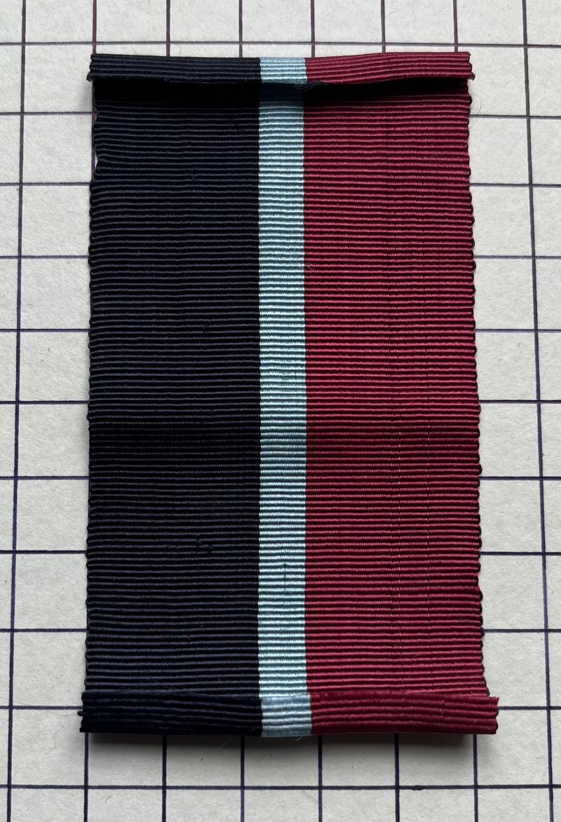 Non synthetic early silk ribbon woven red light blue and dark blue RAF colours foreign service helmet pagri flash.