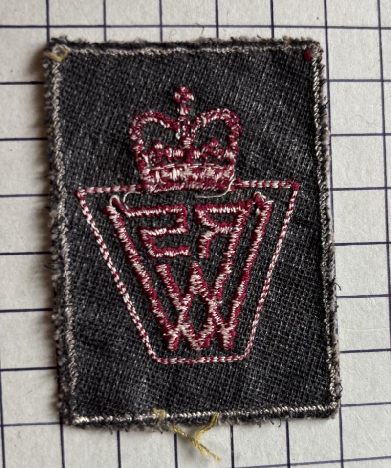 W.R.V.S. A scarce post 1966 late issue Womens Royal Voluntary Service uniform badge. Queen's Crowned red embroidered WRVS monogram on woven backing. Very good condition.