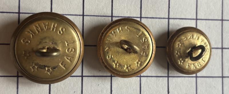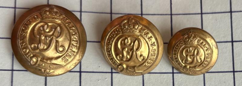 cWWI, gilt staff Officer buttons King George the Fifth Cypher (1910-35). Dia: 22mm, 19mm and 17mm. All maker marked 'FAST SHANK'. VGC.